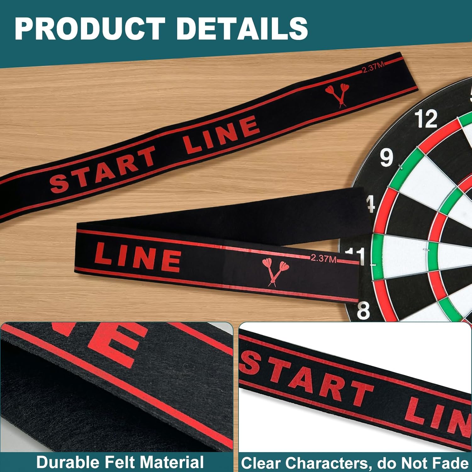 1.【High-quality material】: The drop line dart is made of high-density felt and has a surface with strong friction. It is attached to the floor with double-sided adhesive tape, sticks firmly, but is easy to attach and remove without leaving any residue. When throwing darts, it stays securely in place despite being walked on or pulled, and the durable felt construction resists wear and tear. Even with long-term use, there is minimal pilling or damage, ensuring a long service life