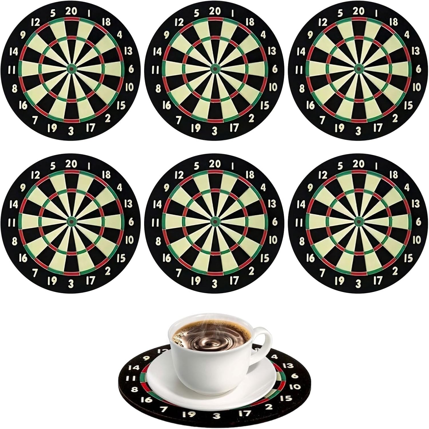 Material: [Wood] Color: [color] Size: [10cm*10cm] The Package Includes: [beer mats for home pub]&[6pcs] Creative dart theme: beer mats for home pub use high-definition printed dart target patterns, black and yellow color matching is eye-catching, adding a gaming atmosphere to the home/bar, and is a fun gift for dart lovers. Safe and environmentally friendly materials: darts coasters use cork bottom, high temperature resistance of 70-75℃, odorless and non-toxic, in line with EU environmental standards. Strong anti-slip design: cork darts coasters have 4 silicone pads/full cork bottom, anti-slip and scratch-resistant, firmly support all kinds of cups, and prevent water stains from penetrating and damaging the tabletop. Convenient cleaning and maintenance: The surface of beer mats is waterproof and non-absorbent, and drinks can be wiped clean (not machine washable), and they will not fade or crack after long-term use. Multi-scene application: beer coasters use a standard size of 10cm to fit mugs/red wine glasses, suitable for parties, cafes, and study rooms, and 4-6 sets meet the needs of multiple people.
