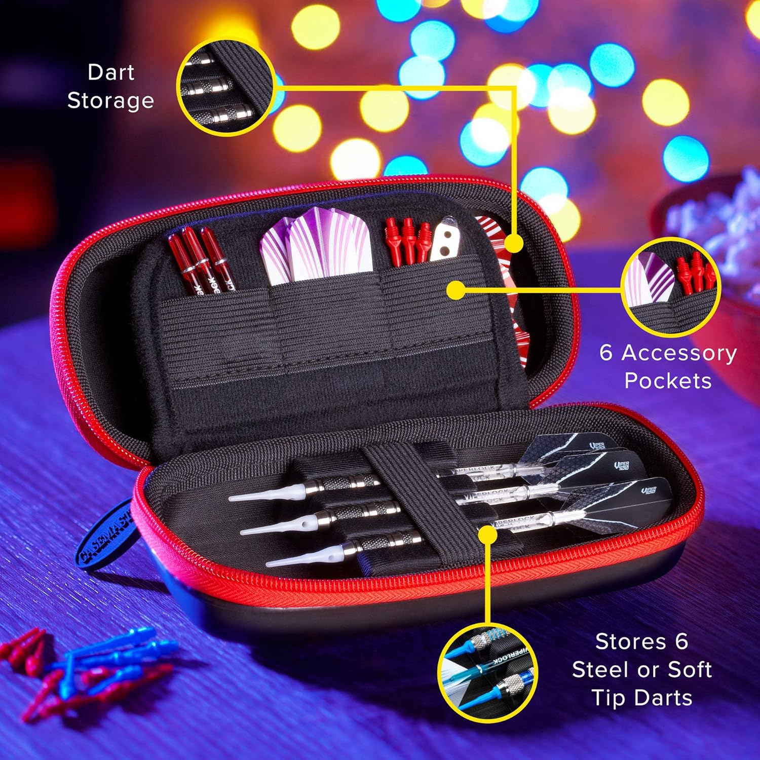 An all-new STATE OF THE ART dart carrying solution is here. The Sentry is the NEWEST in a line of quality cases utilizing TACTECH foam shells for HARDY DEFENSE. These molded EVA shells stand up to heavy blows and everyday use to ensure your darts and accessories are kept in TOP FORM. Textured foam inserts grip your darts tightly, securing them in case of danger, while the PERFECT-FIT pockets hold flight and other accessories just the same. Able to hold SIX DARTS, the Sentry is well equipped to keep your favorite darts at hand. The TacTech foam features molded ridges for extra grip in the hand or on slippery table surfaces, all while looking sleek and modern. Available in three color color highlights. Darts not included, darts and accessories sold seperatly.