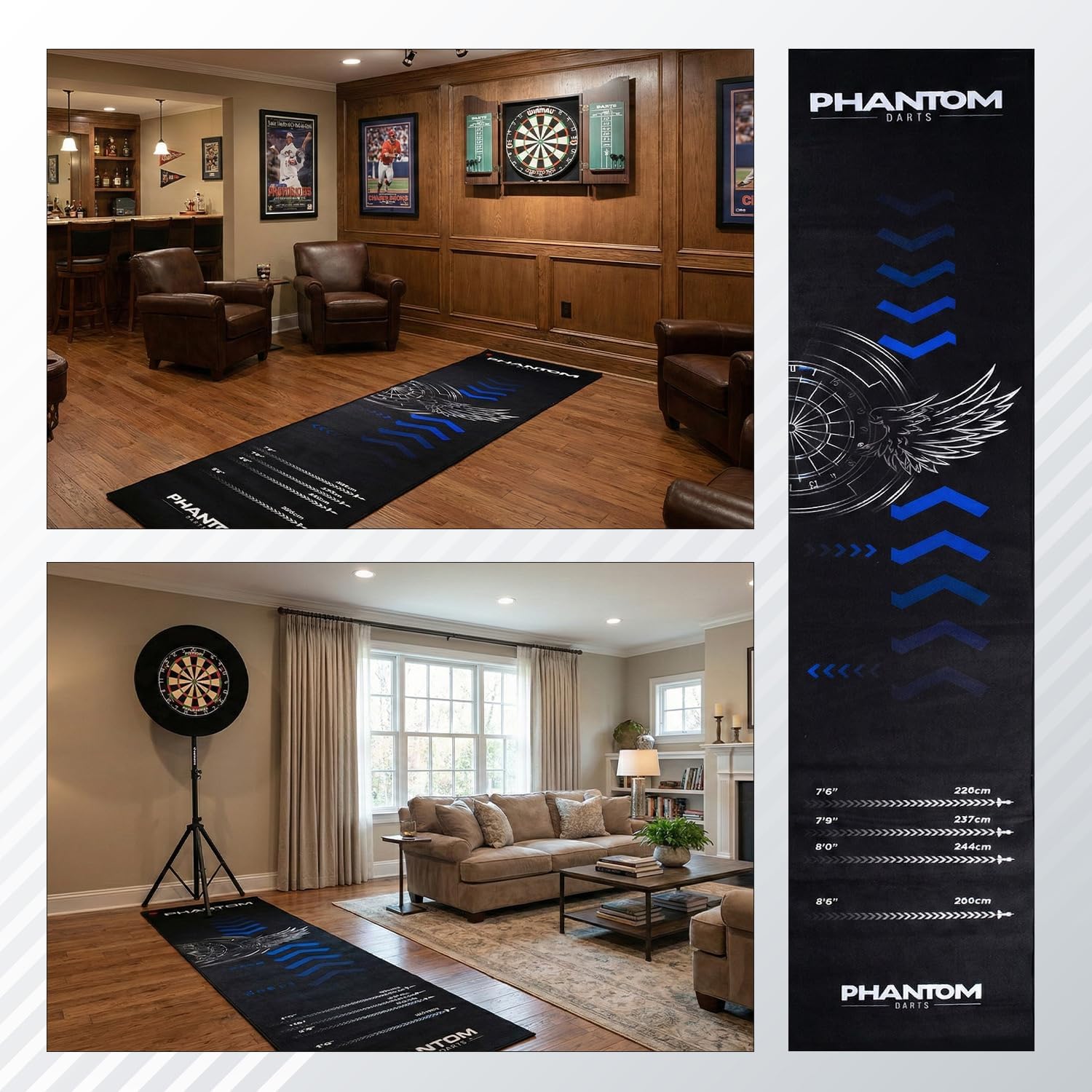 Phantom Darts practice dart oche mat delivers durability, style, and floor protection for every darts setup.
