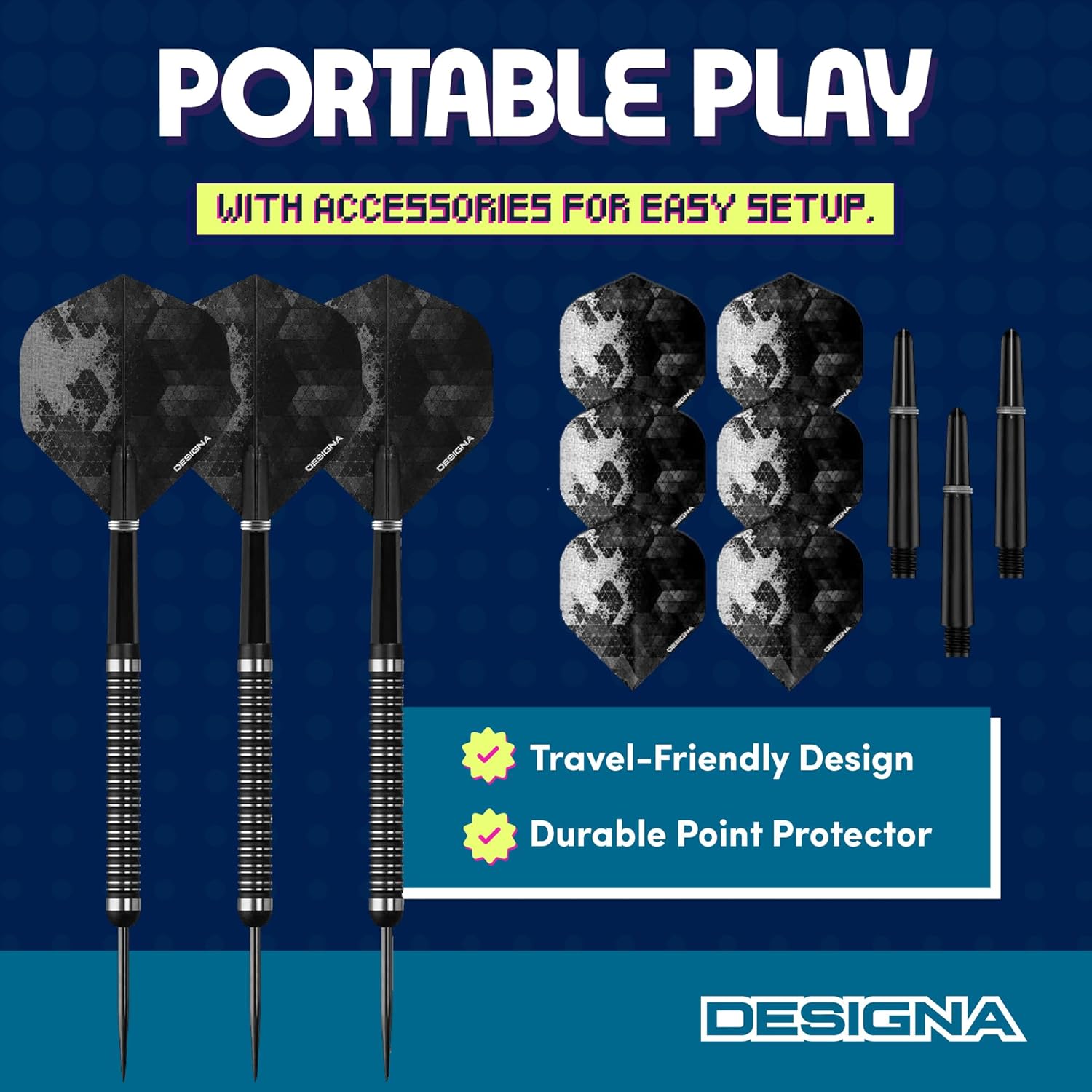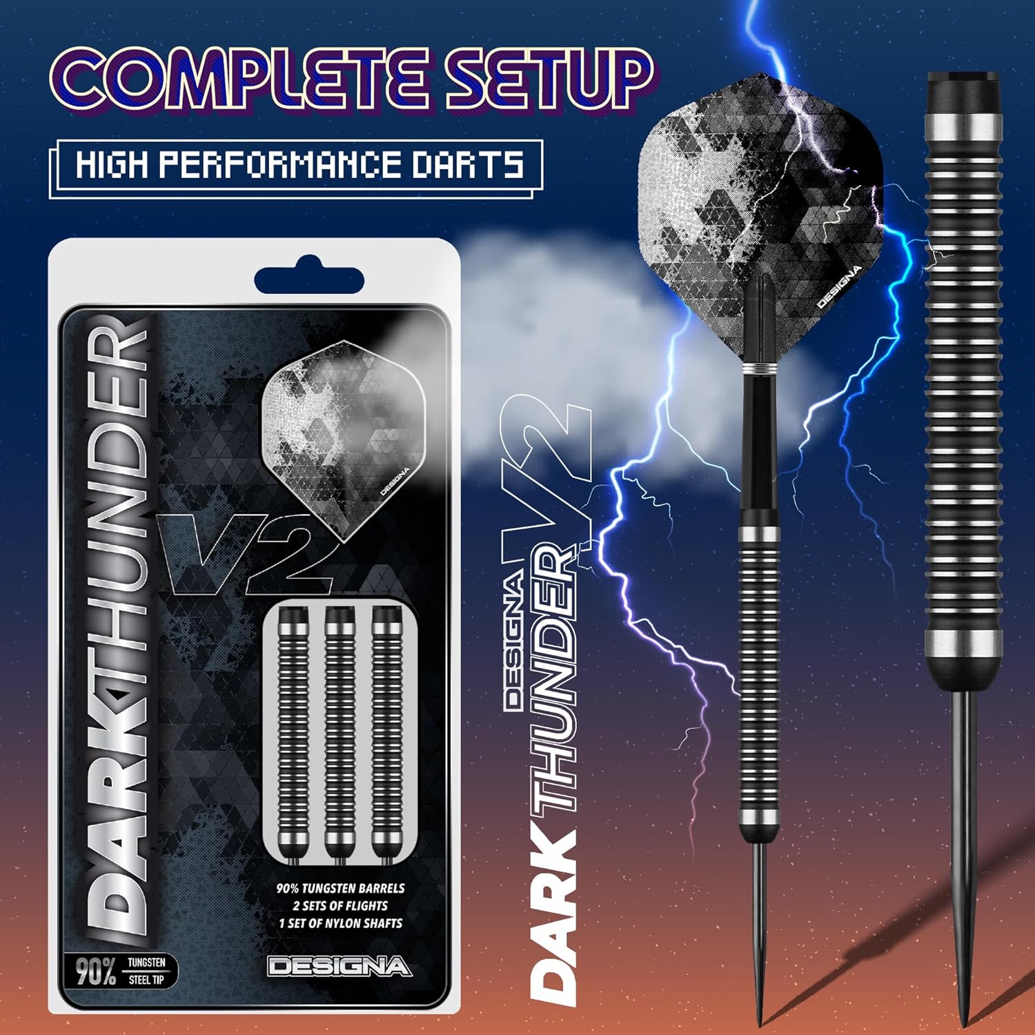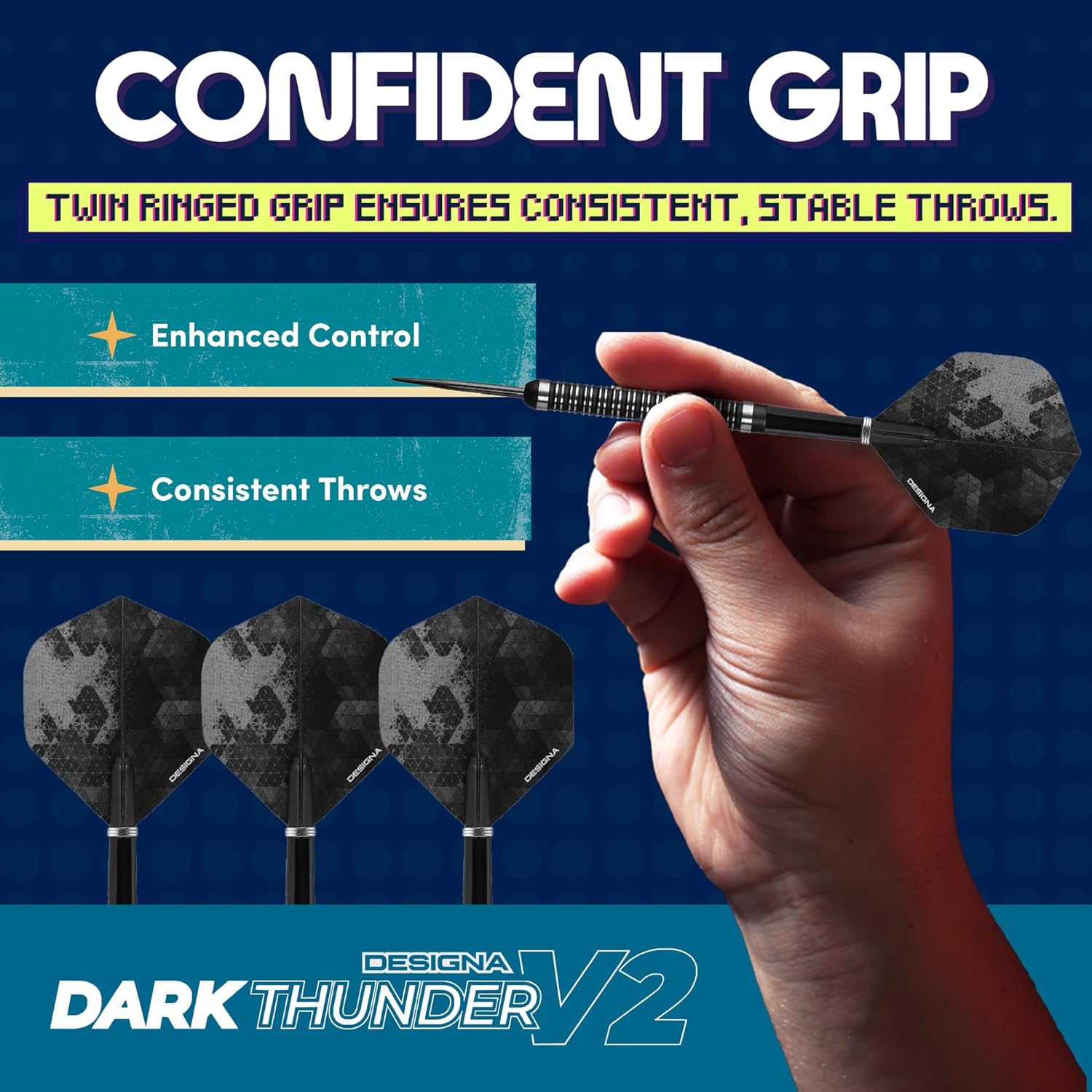 Unleash power and precision with the Designa Darts Dark Thunder D3531 90% Tungsten Steel Tip Dart Set – 20g, Black. Engineered for performance and control, this premium dart set delivers professional quality and striking style for players who demand consistency every throw.