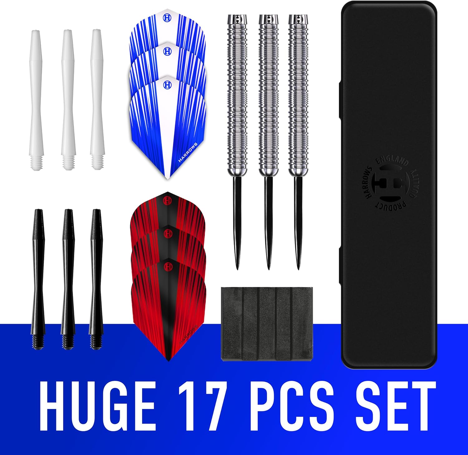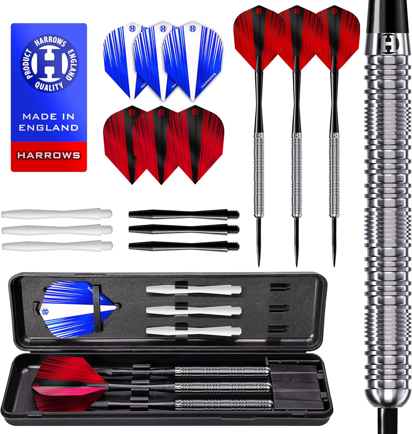 Premium Dart Stems & Strong Flights: Harrows Dart Stems are recognised as the leader in vice-like flight grip, reducing the chance of flights falling off in play. Joined with super strong Marathon Dart Flights, which are manufactured in the UK.