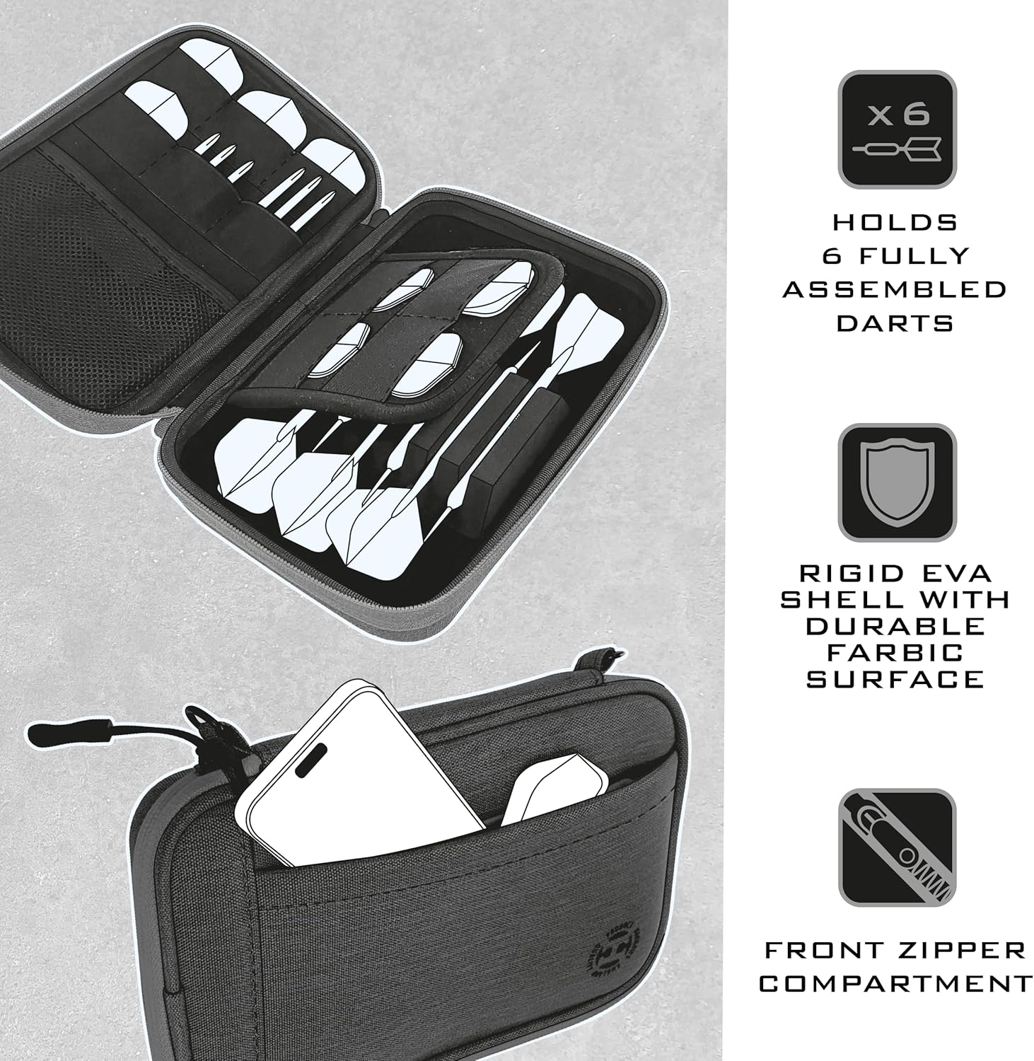 Harrows Darts Case, Smart Dart Case Darts Holder, Holds 6 Darts, Protective EVA Material with Fabric Finish, Professional Darts Accessories, Holds Darts Fully Assembled