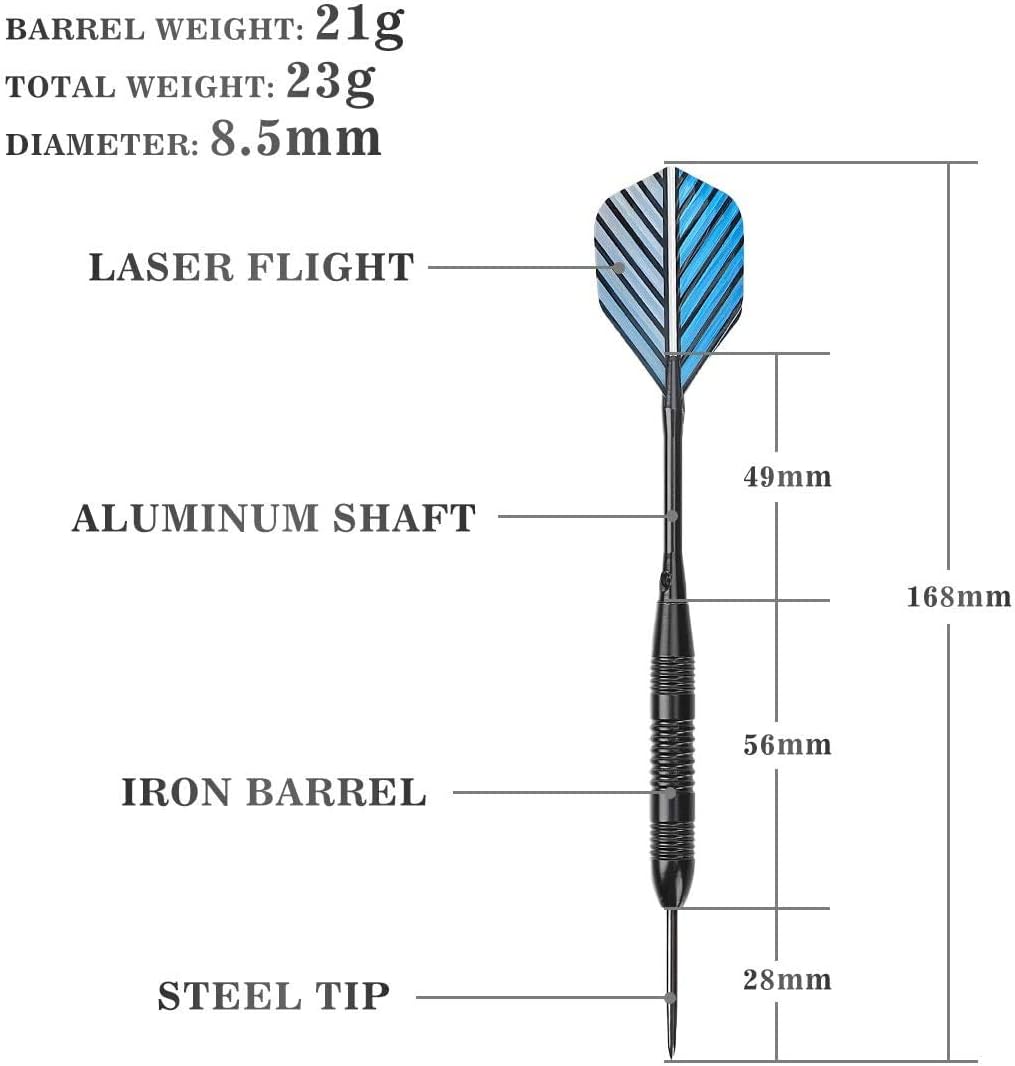 These darts have unique three-section grip textures in metal barrel and 23g total weight make them fly straight with precision.