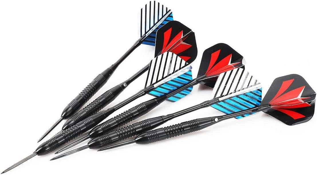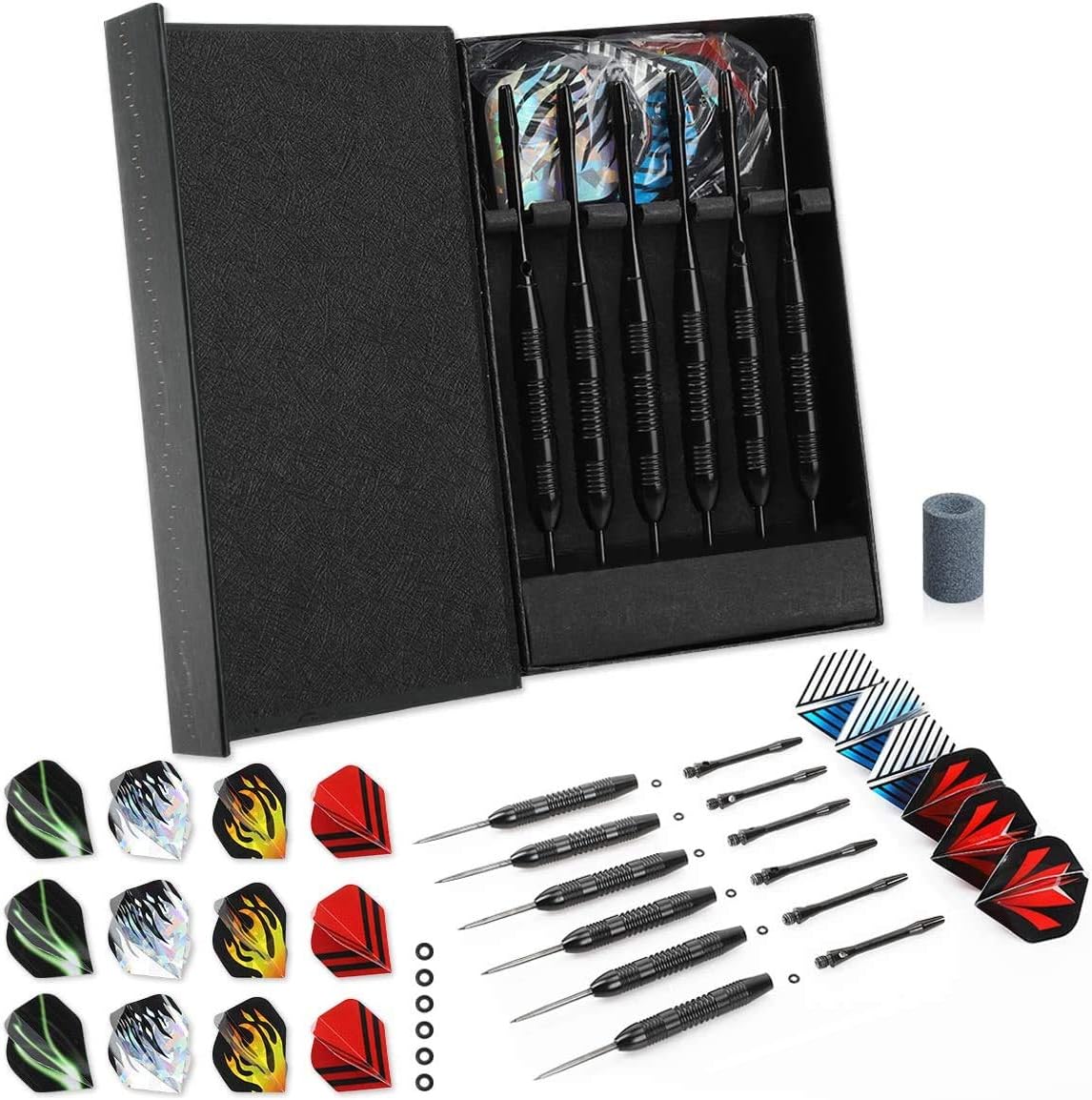This 6 pack Steel darts set by LARRITS is ideal for any level player. You will have fun with this set whether you’re a beginner looking for a starting set or an experienced darts player. The box prepares darts as well as accessories for you to start the game.