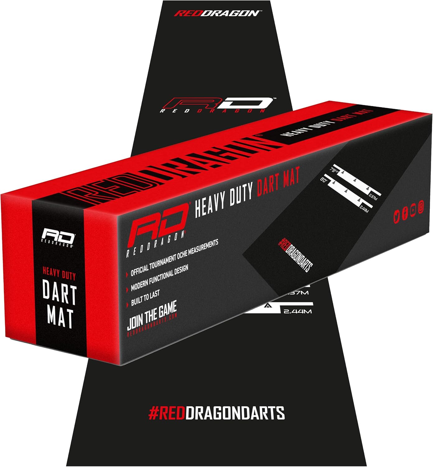 The Red Dragon heavy duty darts oche mat combines ultimate durability and a modern, sporty design to elevate your darts experience. Perfect for both casual players and tournament-level competitors, this darts mat is crafted with high-quality rubber to withstand the wear and tear of regular use. Whether you’re practicing at home or hosting competitive matches, this durable mat offers official tournament oche measurements for precision and consistency.