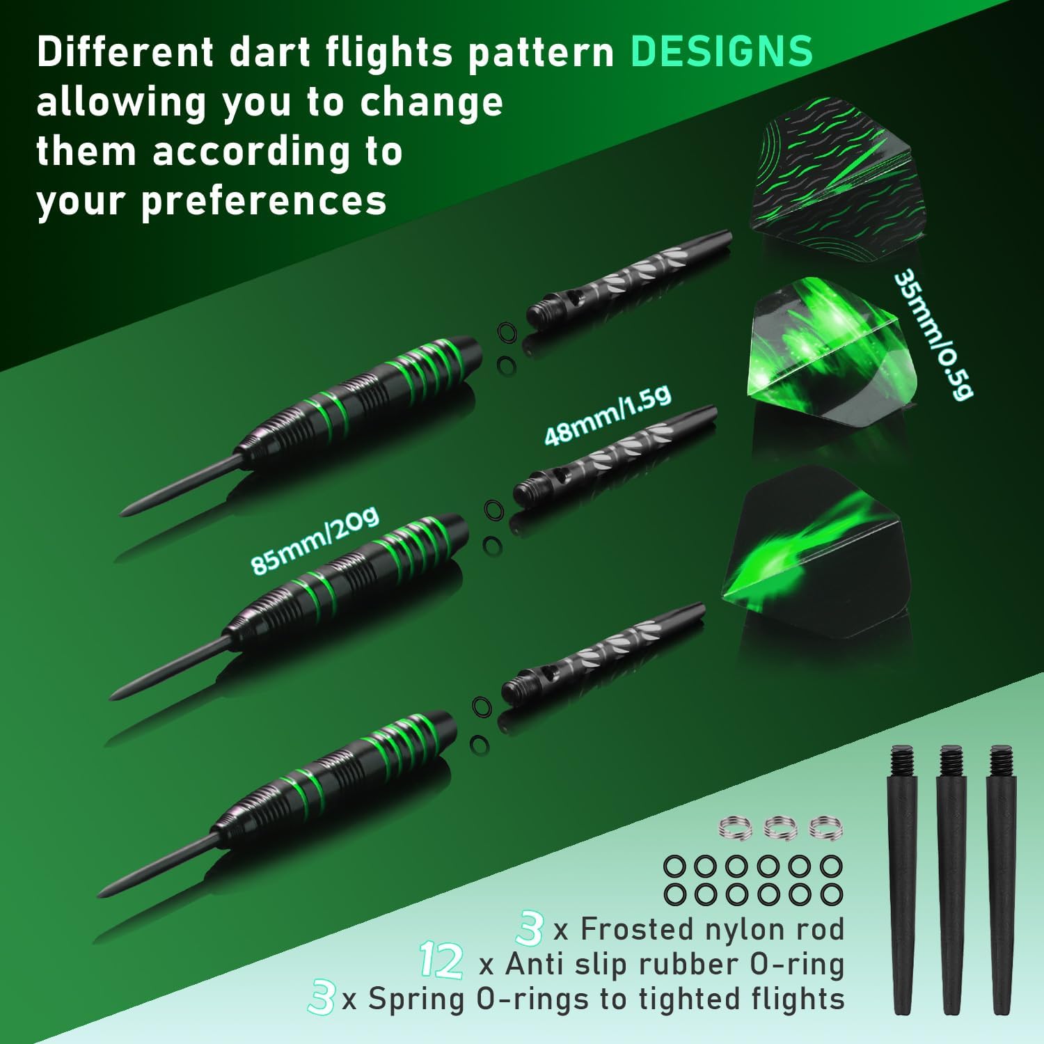 【Abundant Accessories】The set includes 3 high-quality aluminum dart shafts and 3 spare nylon shafts, and 12 rubber O-rings to prevent the dart stems from loosening. Equipped with a dart sharpener and a flight protector to keep the dart tip sharp and protect the darts flights respectively. Fully meet your needs for daily entertainment and competition with friends.