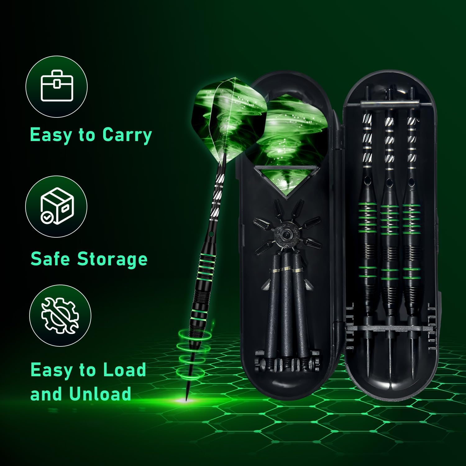 【Excellent Quality, Darts Set with Case】This 22g darts set is suitable for players of all levels, whether you are a beginner or an expert, you can experience its excellent performance and rich configuration. The handle design of the dart follows the ergonomic principle to ensure a stable flight trajectory and a moderate flight distance, allowing you to enjoy the fun of throwing.